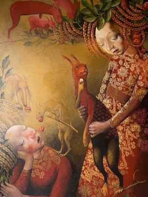Pogranicze surrealizmu, symbolizmu i malarstwa naiwnego z silnymi elementami stylizacji