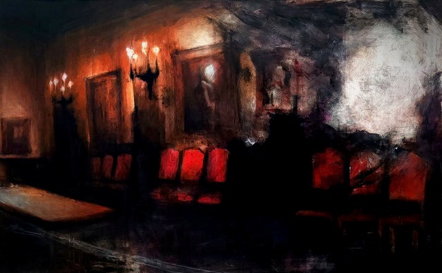 Technika: farba olejna, tusz na płótnie bawełnianym