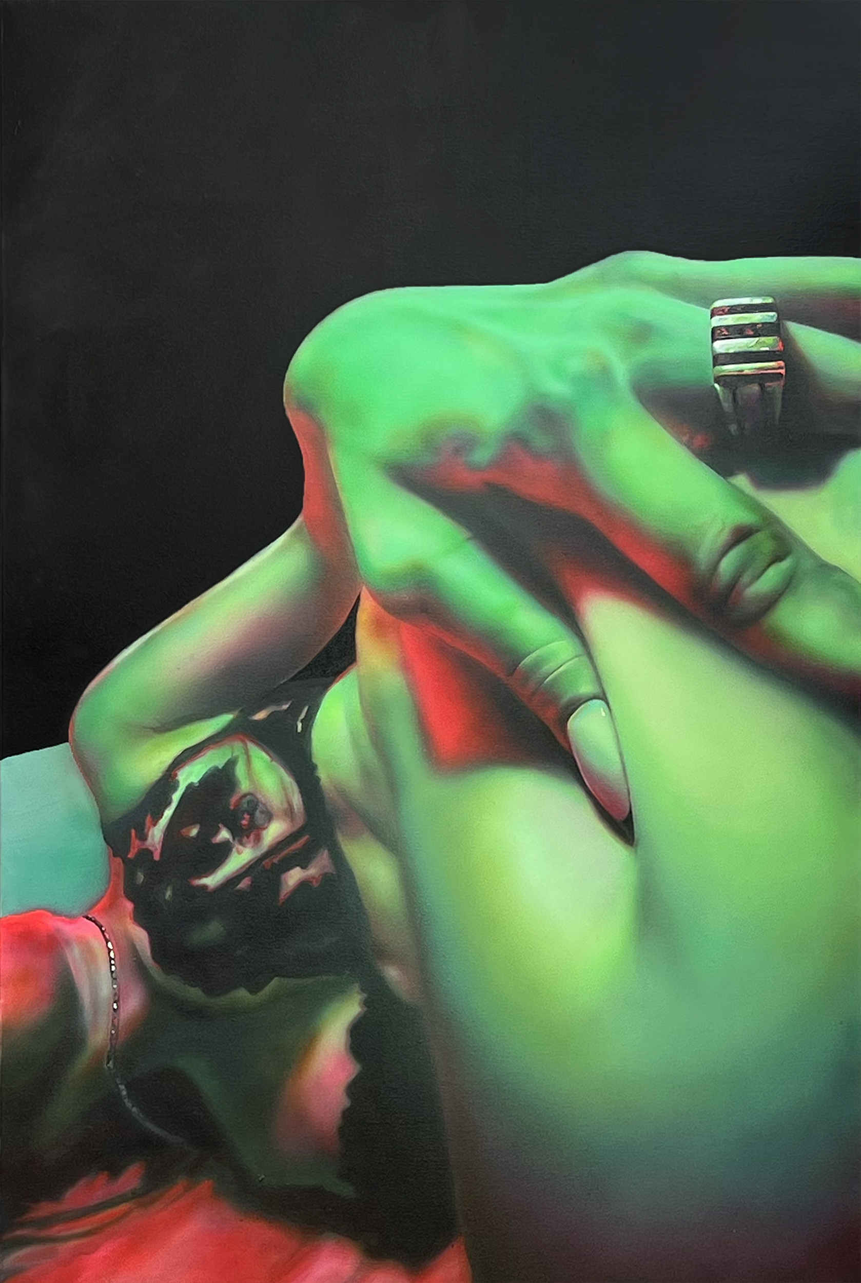 W centrum malarskiej eksploracji Oliwii Choroś znajduje się ciało – nie jako bierny obiekt estetycznej kontemplacji, lecz jako wielowymiarowy, odczuwający podmiot. Artystka, urodzona w 2001 roku w Ciechanowie, należy do pokolenia twórców, którzy z odwagą i bezkompromisową szczerością podejmują dialog z własną tożsamością, cielesnością i emocjami. Jej prace to intymny, a zarazem uniwersalny zapis doświadczeń, niepewności i momentów zaskakującej autoafirmacji.