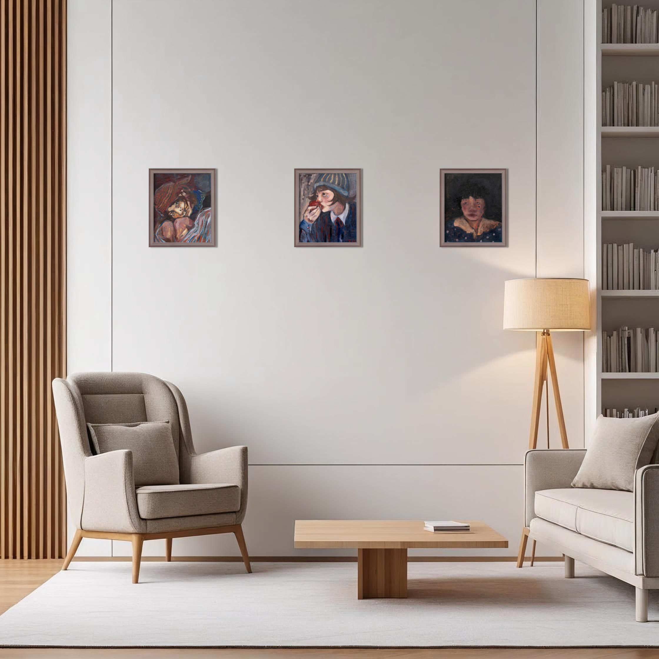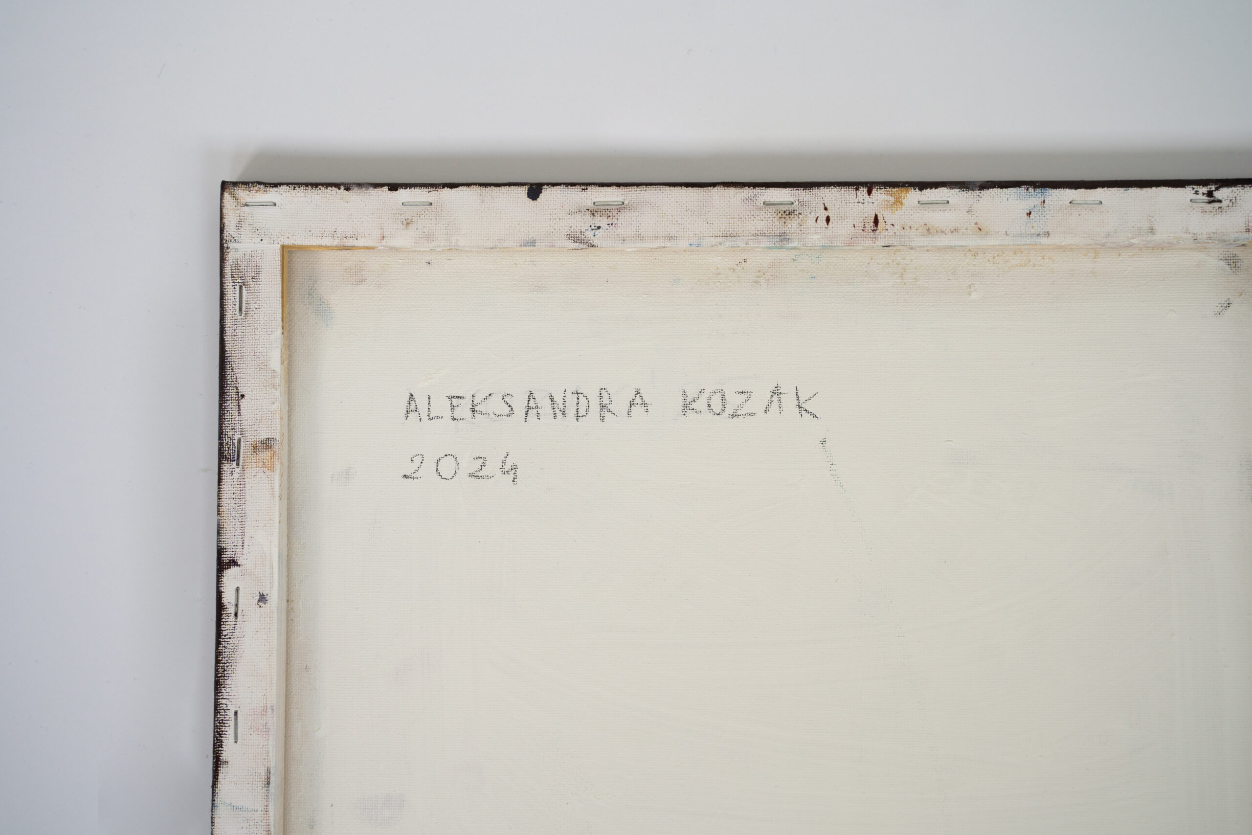 Podsumowanie: „W chustce” to kolejny poruszający, małoformatowy portret Aleksandry Kozak, który oddaje złożoność ludzkich emocji. Artystka tworzy dzieło o uniwersalnym przesłaniu, które wchodzi w dialog z widzem na głębokim, emocjonalnym poziomie. Jest to obraz o dużej wrażliwości i malarskiej sile.