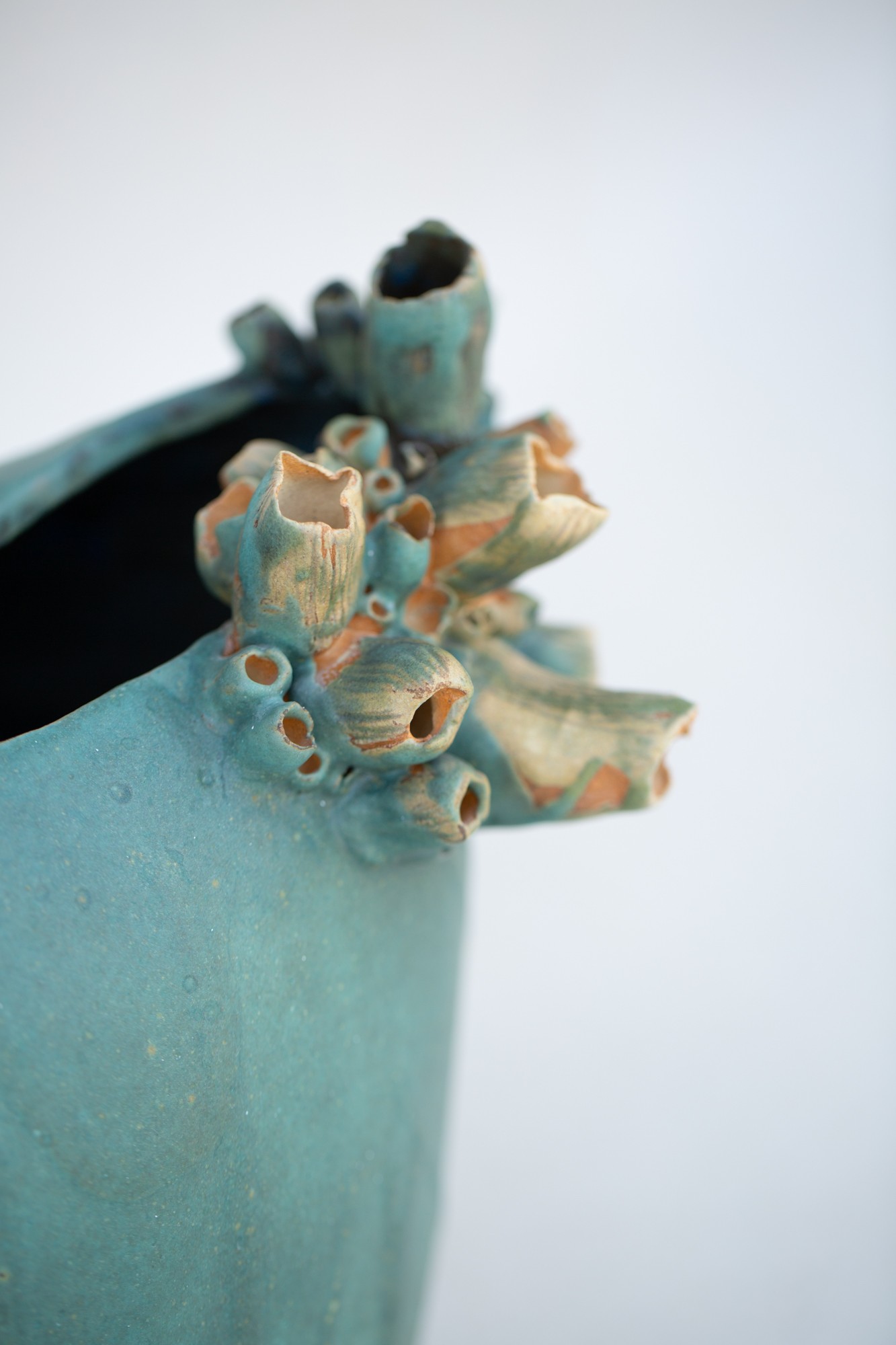 Inspiracja Bałtykiem uwieczniona w detalach. Unikalnym elementem dekoracyjnym wazy są precyzyjnie wykonane, ręcznie zdobione aplikacje, umieszczone wokół obu końców górnej krawędzi. Te misterne formy, przypominające bałtyckie pąkle, są charakterystycznym motywem dla kolekcji “Bałtyk”. Dodają one wazie organiczny, naturalny charakter i podkreślają jej związek z morzem.