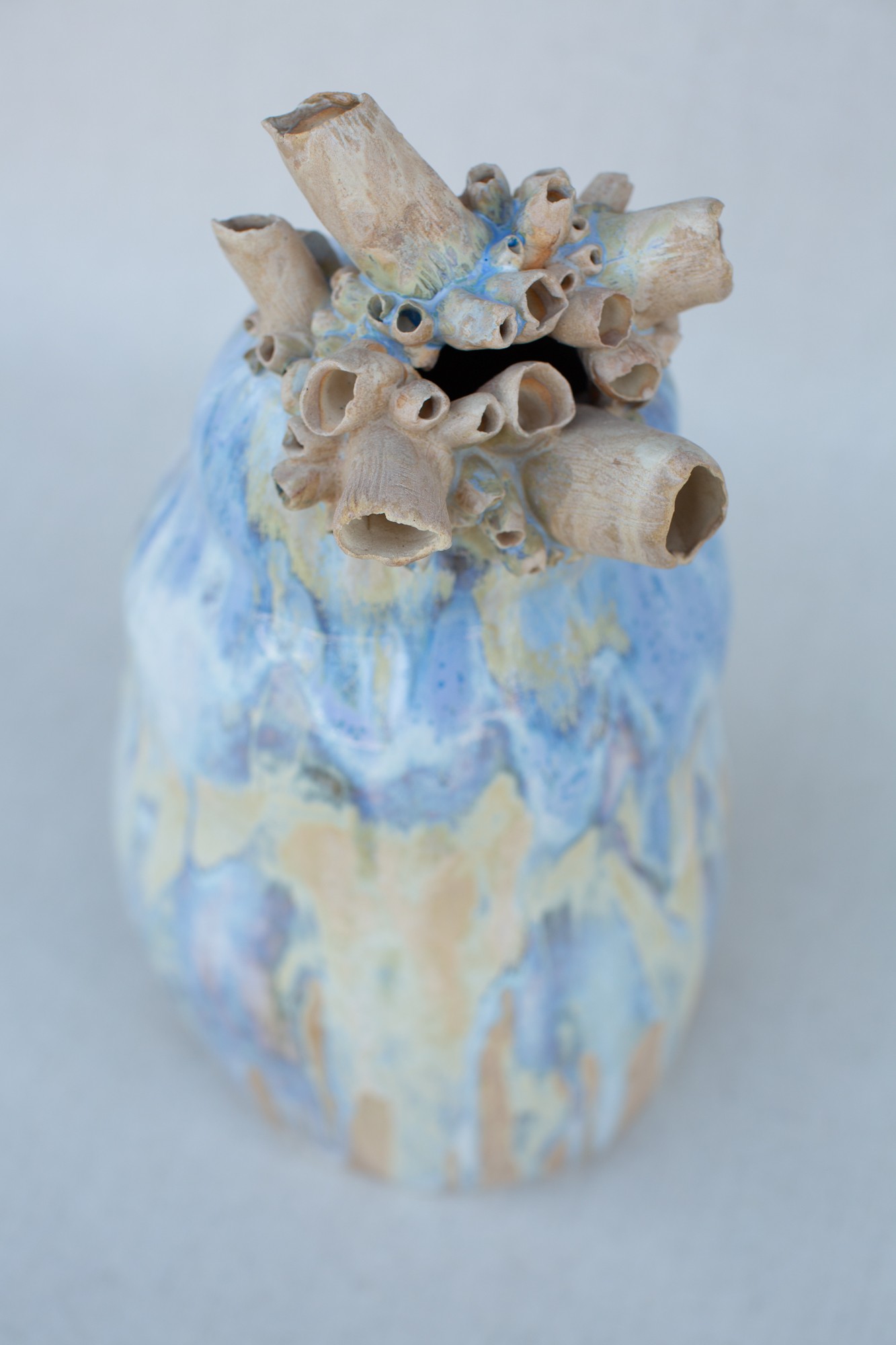 Inspiracja naturą uwieczniona w detalach. Charakterystycznym elementem dekoracyjnym wazy są ręcznie formowane aplikacje, umieszczone wokół górnej krawędzi. Te misterne formy, przypominające bałtyckie pąkle, są znakiem rozpoznawczym kolekcji “Bałtyk”. Dodają one wazie organiczny, naturalny charakter i podkreślają jej związek z morzem.