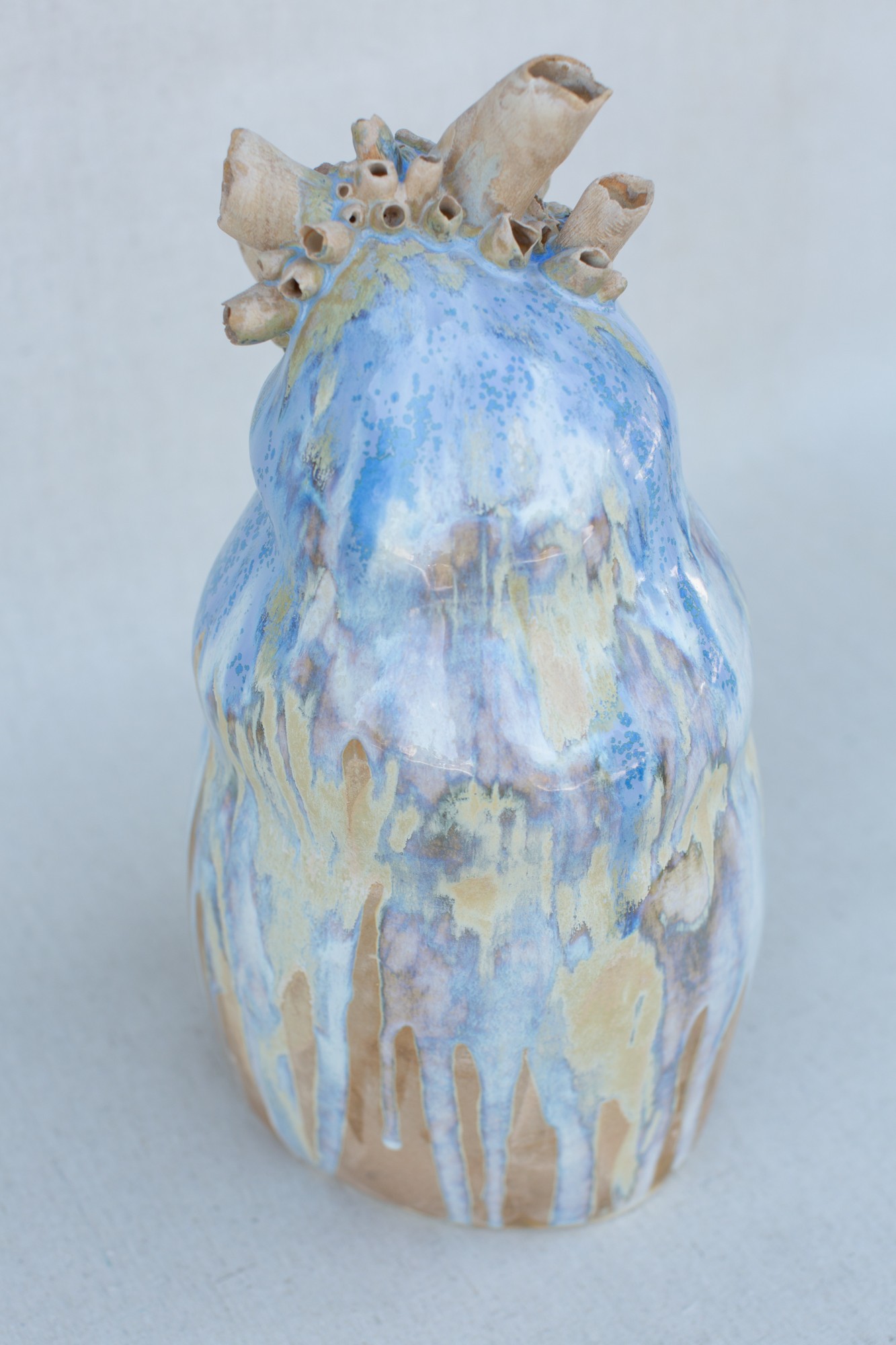 - Suszenie: Gotowa forma jest suszona i wietrzona, tak aby wyrównał się poziom wilgoci w materiale. Czas suszenia powinien być długi i powolny. Glina powinna kurczyć się równomiernie i nie może dochodzić do wewnętrznych naprężeń i pęknięć. Całość tego etapu może zająć nawet do 2 tygodni.