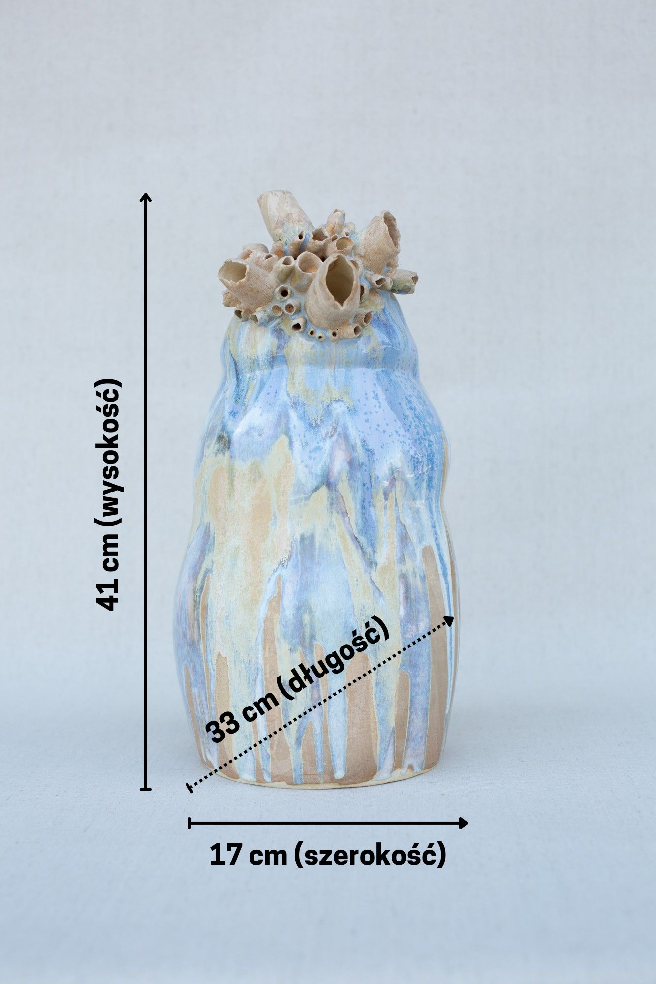 Podsumowanie: Artystyczna waza ceramiczna “Bałtyk” to wyjątkowy element wyposażenia wnętrz, który zachwyca swoim designem, jakością wykonania i unikalnym charakterem. Jest to idealny wybór dla osób ceniących oryginalne, ręcznie robione przedmioty, które wnoszą do wnętrza duszę i artystyczny akcent.