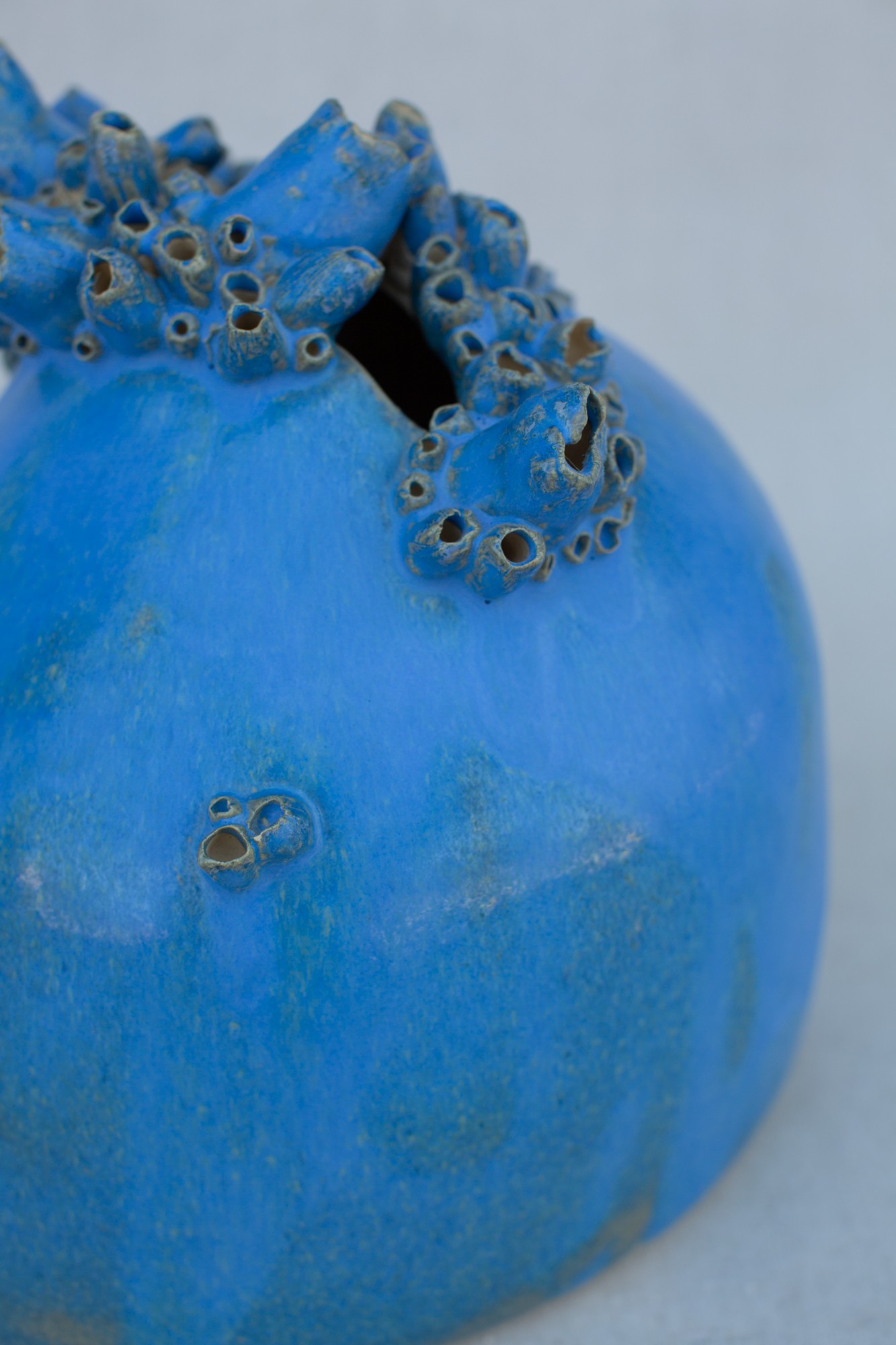 Inspiracja naturą uwieczniona w zdobieniach. Charakterystycznym elementem dekoracyjnym są ręcznie formowane aplikacje, umieszczone wokół górnej krawędzi. Te misterne formy, przypominające bałtyckie pąkle, są znakiem rozpoznawczym kolekcji “Bałtyk”. Dodają one wazie organiczny, naturalny charakter i podkreślają jej związek z morzem.