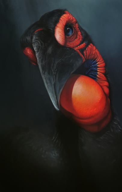 Artystka w cyklu kilku obrazów zatytułowanych „Dzioborożce” dokumentuje zagrożony wyginięciem egzotyczny gatunek ptaków. Praca przedstawia głowę samicy dzioborożca kafryjskiego. Jak zawsze w przypadku prac tej malarki, obraz jest doskonale dopracowany warsztatowo i kompozycyjnie. Sportretowany osobnik przechyla lekko głowę na bok, jakby zastanawiając się nad losem swojego gatunku. Oby nie udało nam się doprowadzić do sytuacji, w której za parę lat tylko dzięki tym obrazom będziemy wiedzieli, jak wyglądał kolejny wyeliminowany przez człowieka gatunek.