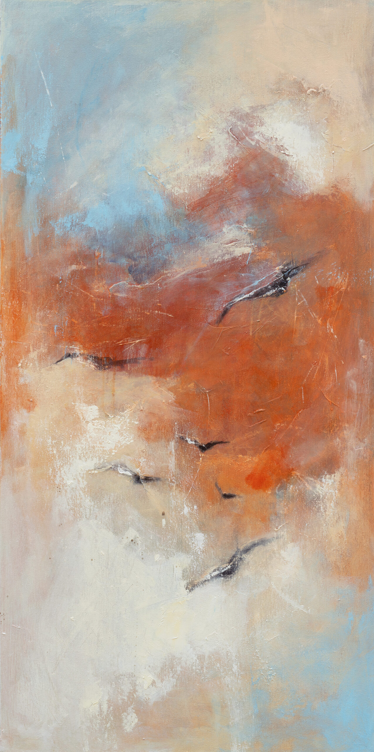 Jednakże „Odlot III” doskonale funkcjonuje również jako samodzielne dzieło. Jego pionowa kompozycja, choć nietypowa dla tradycyjnego pejzażu, z powodzeniem oddaje dynamikę i rozległość nieba, a bogata paleta barw i motyw lecących ptaków czynią go atrakcyjnym i emocjonalnym obrazem.