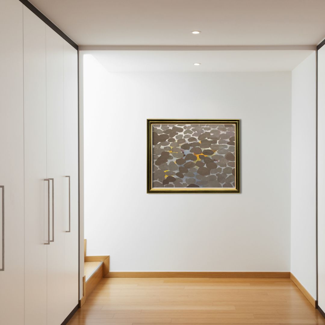 Dominują na nim stonowane, jesienne barwy: szarości, brązy i odcienie żółci. Ta prawie monochromatyczna paleta potęguje melancholijny nastrój i podkreśla naturalną urodę przedstawionej sceny. Delikatne przejścia tonalne między jasnymi i ciemnymi partiami obrazu nadają mu głębię i trójwymiarowość. Światło odbijające się od kałuży tworzy subtelne refleksy, które ożywiają całą kompozycję, a grubo nałożona farba tworzy wrażenie trójwymiarowości przedstawionej materii.