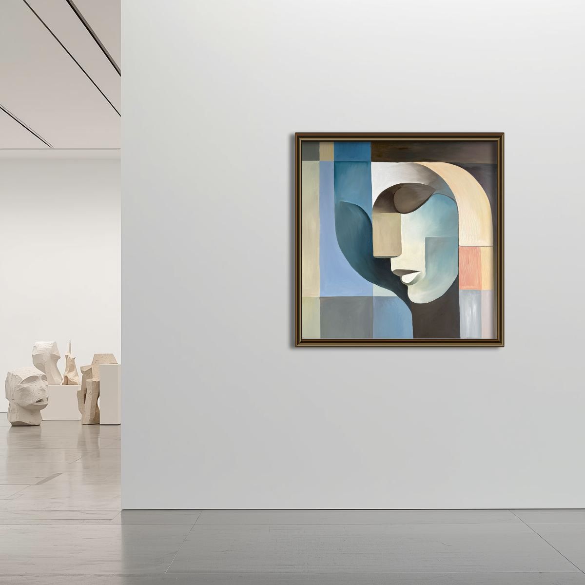 Po chaosie „Rozpaczy” i paraliżu „Strachu”, artystka prezentuje nam emocję o innym charakterze – nie gwałtowną, lecz uporczywą i ciężką. Formalnym kluczem do odczytania obrazu jest wybór profilu. W przeciwieństwie do konfrontacyjnych portretów frontalnych, postać w „Smutku” odwraca się od widza, zamykając się w sobie. Niewidoczne spojrzenie spod zamkniętych powiek jest skierowane do wewnątrz. Kompozycja, choć nadal geometryczna, rezygnuje z ostrych, krystalicznych pęknięć i form na rzecz dużych, miękko zaokrąglonych, opadających płaszczyzn. Forma zdaje się ciężka, poddana sile grawitacji.