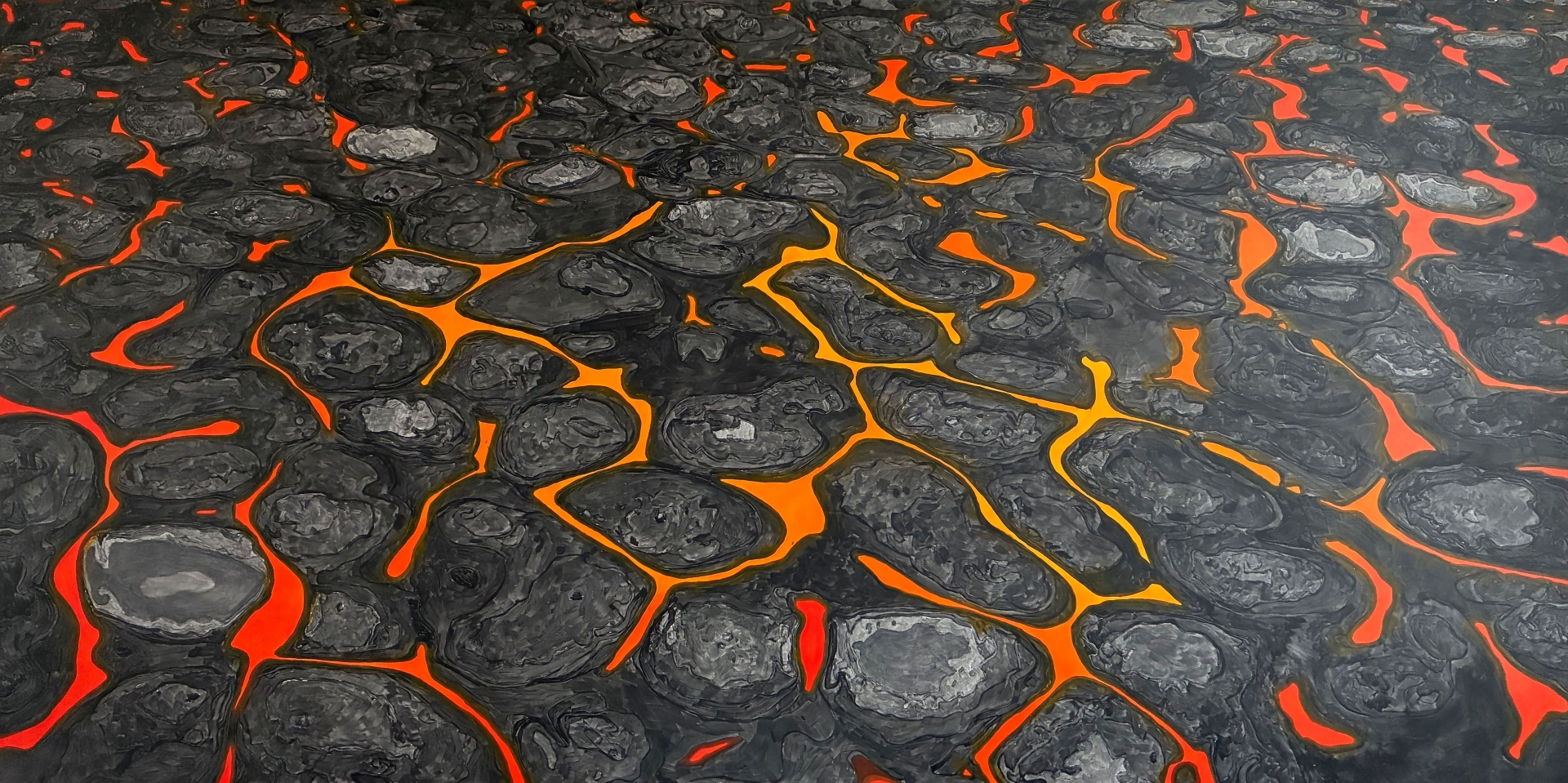 Twórca, wykorzystując swoje doświadczenie w korekcji barwnej i pracy z obrazem cyfrowym, buduje napięcie nie poprzez opowieść, lecz za pomocą czystej luminancji. Światło w tej pracy nie oświetla obiektów z zewnątrz; ono zdaje się być uwięzione pod warstwą farby, desperacko szukając ujścia w szczelinach między organicznymi formami. Jakub Łączny pozycjonuje się tutaj jako wnikliwy obserwator współczesnego niepokoju, dostrzegający w twardniejącej lawie metaforę znikomego wpływu jednostki na globalne scenariusze. Dzieło to umacnia jego status na scenie sztuki współczesnej jako artysty potrafiącego przełożyć skomplikowane relacje intermedialne na język pierwotnych, niemal geologicznych emocji