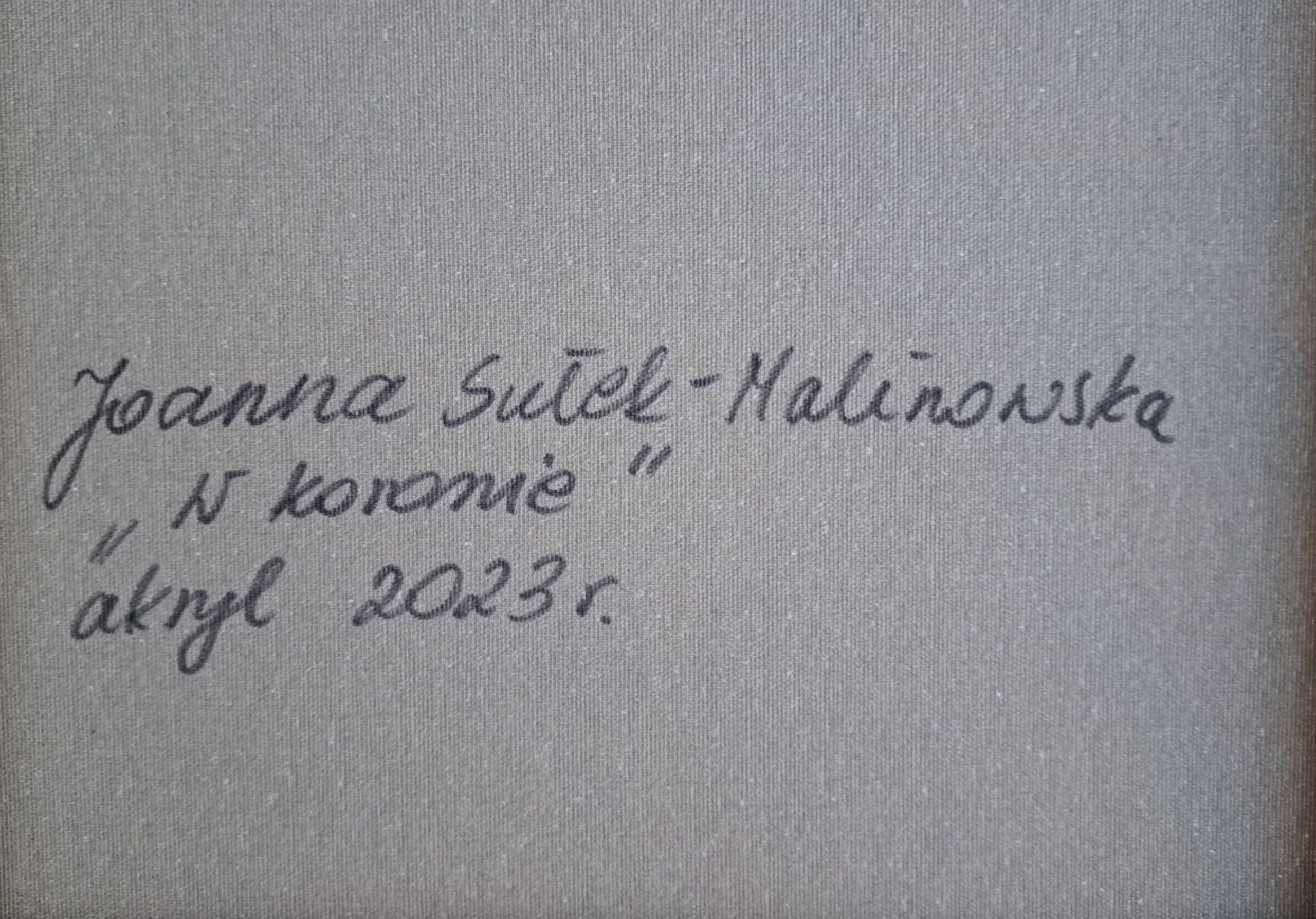 “W Koronie” to niezwykłe, akrylowe płótno, które zaprasza nas w podróż do świata wyobraźni i wrażeń artystycznych. Obraz stanowi impresję malarki na temat słońca widocznego przez koronę drzewa, jednak przedstawiony jest w sposób daleki od realizmu. Artystka zastosowała tu niezwykle odważne i zaskakujące zabiegi kolorystyczne, tworząc unikalną, pełną ekspresji wizję natury.