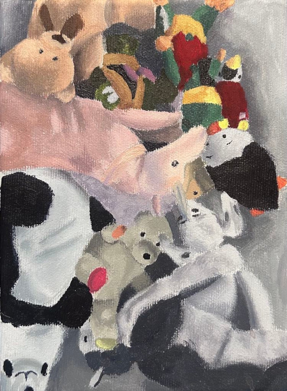 Na płótnach Julii Marii Matusiak niewinny świat pluszowych zabawek zderza się z ciężarem egzystencjalnych pytań, tworząc intrygujący dysonans estetyczny. Delikatne, z pozoru zabawne, wizerunki misiów stają się nośnikiem głębokich refleksji nad przemijaniem, nieuchronnością upływu czasu, a także ulotnością dzieciństwa i ostatecznością śmierci.