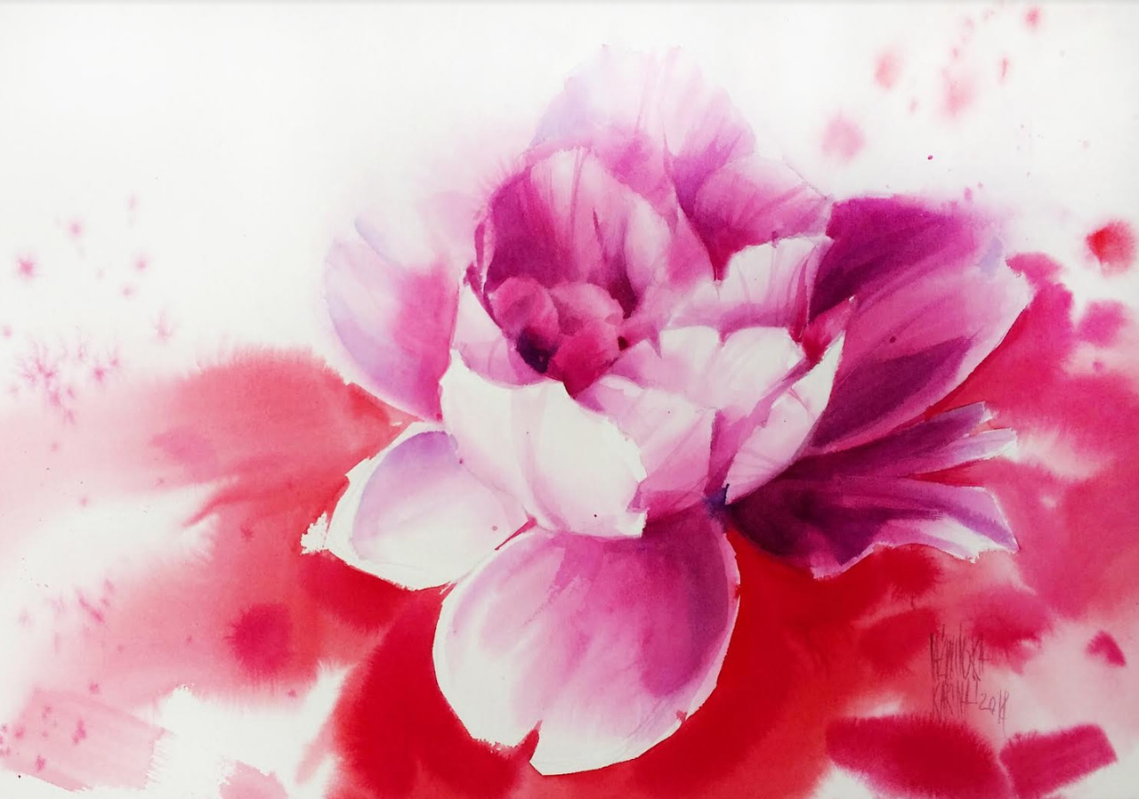 W naszej Galerii Wiele Sztuki oferujemy kilkanaście znakomitych, delikatnych akwareli autorstwa Kariny Jaźwińskiej. Te zwiewne, jakby namalowane kolorową mgłą obrazy przedstawiające różne kwiatowe kompozycje wnoszą do naszego wnętrza łagodny nastój i zapach ogrodu w środku lata. Znakomicie wzbogacają każdą przestrzeń, zarówno w domu, mieszkaniu jak i w biurze. Utrzymana głównie w różnych odcieniach różu i fioletów paleta cieszy oko i roztacza wkoło spokojny, pogodny klimat.