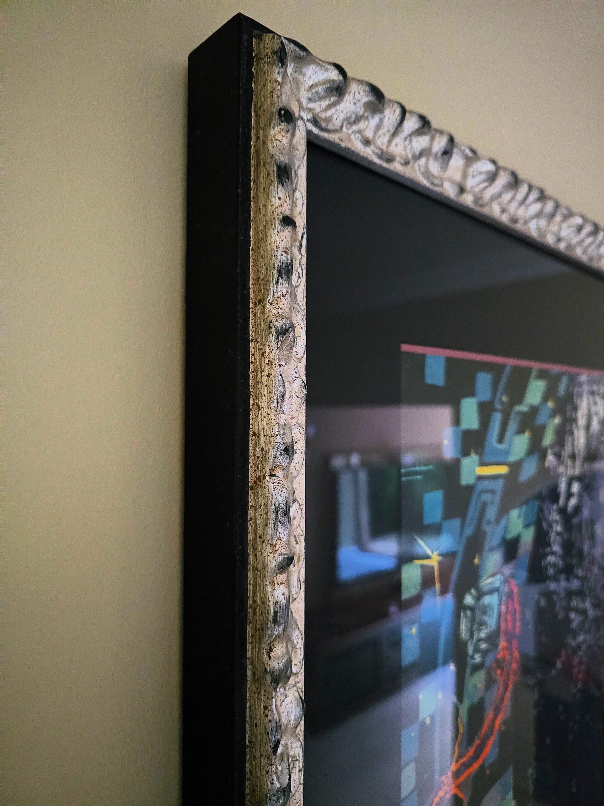 Rama: Praca jest oprawiona w kunsztowną, ozdobną ramę ze szkłem muzealnym