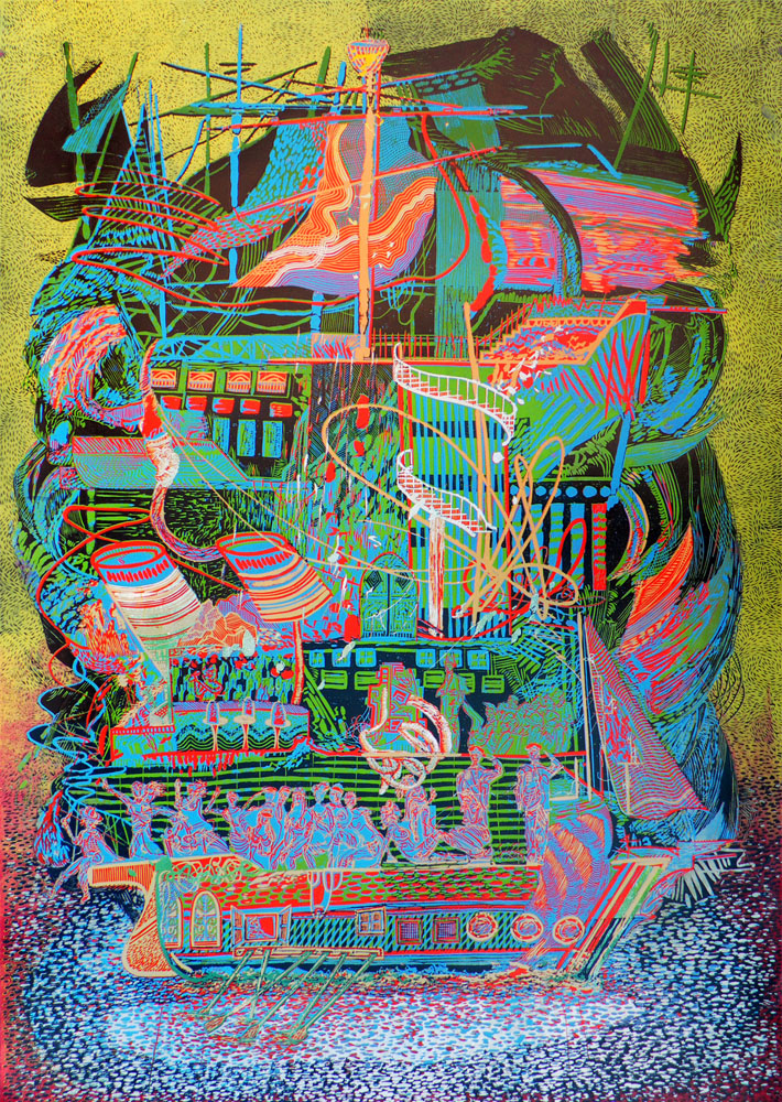 Bardzo szybko nudzi się danym narzędziem, sposobem cięcia czy kolorem, przez co każda z jego prac jest inna. Każda odbitka danego linorytu jest odbijana w różnych kolorach, zestawieniach czy nasileniach, a wszystko po to, aby znaleźć „tę jedyną”. Pełny biogram artysty, oraz wszystkie jego prace dostępne w Galerii Wiele Sztuki znajdziesz tutaj.