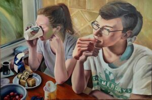 Podsumowanie: Malarka, wykorzystując unikalny styl łączący elementy kubizmu z ekspresjonizmem, tworzy kompozycję pełną dynamiki, barwnych kontrastów i emocjonalnej głębi. Obraz nie tylko potwierdza konsekwencję artystycznych poszukiwań Jakubowskiej, ale także ukazuje jej umiejętność oswajania trudnych tematów poprzez medium malarstwa.