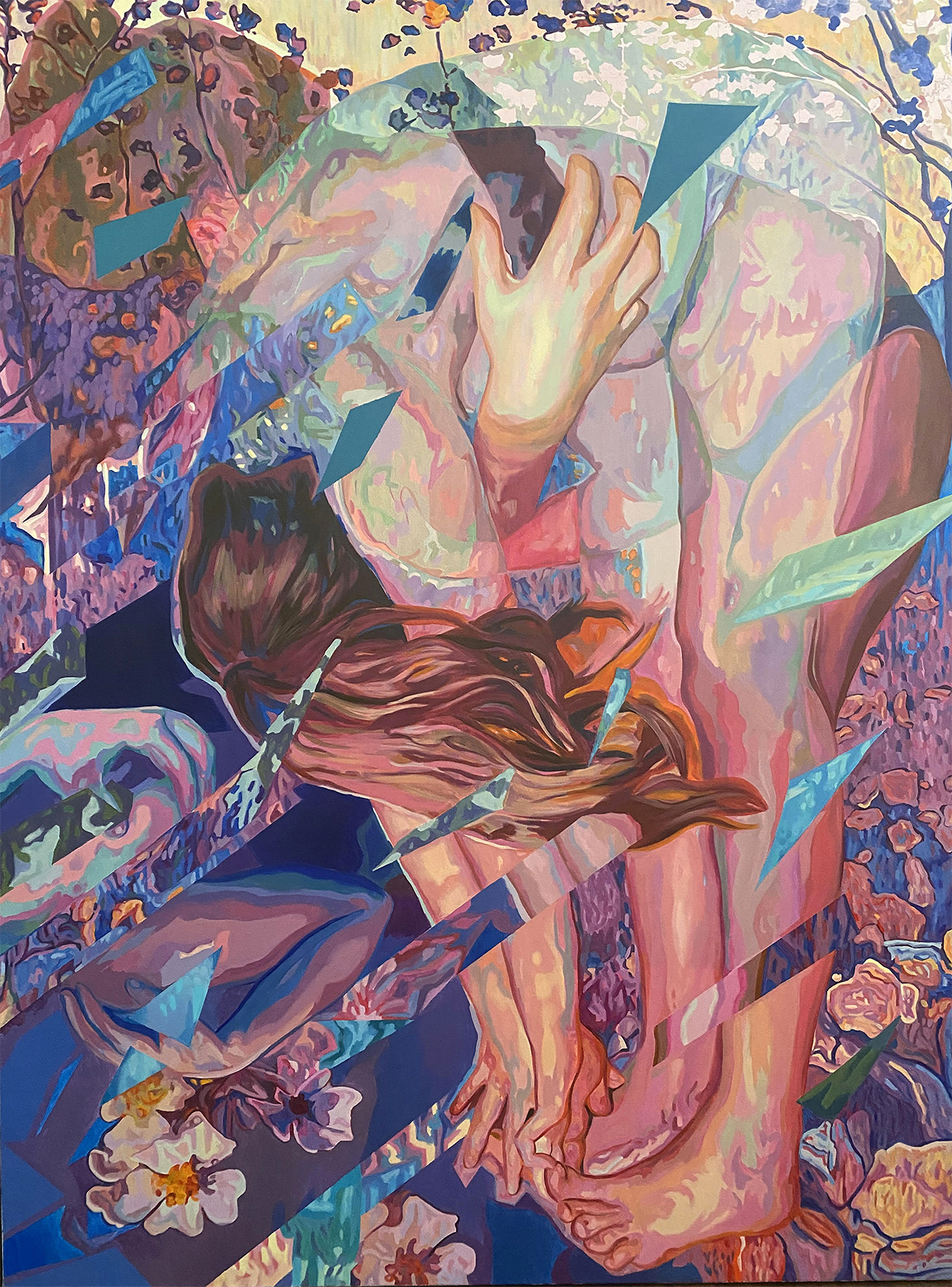 Styl, w jakim został namalowany obraz, można określić jako neo-kubistyczny z silnymi naleciałościami ekspresjonizmu i abstrakcji lirycznej. Artystka wykorzystuje silne, diagonalne linie i płaszczyzny, które przecinają i fragmentują postaci oraz tło, tworząc wrażenie ruchu i destabilizacji.