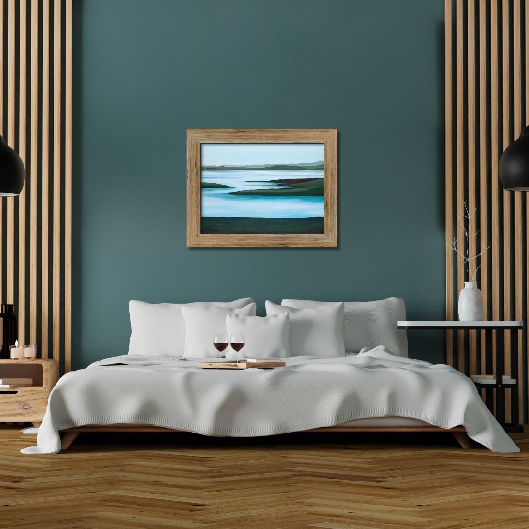Ekspozycja: obraz najlepiej zaprezentuje się w nowoczesnym, minimalistycznym wnętrzu. Jego spokojna kolorystyka i harmonijna kompozycja będą doskonale współgrać z prostymi liniami mebli i neutralnymi ścianami. Można go powiesić zarówno w salonie, jako centralny punkt kompozycji, jak i w sypialni, tworząc intymny kącik do relaksu.