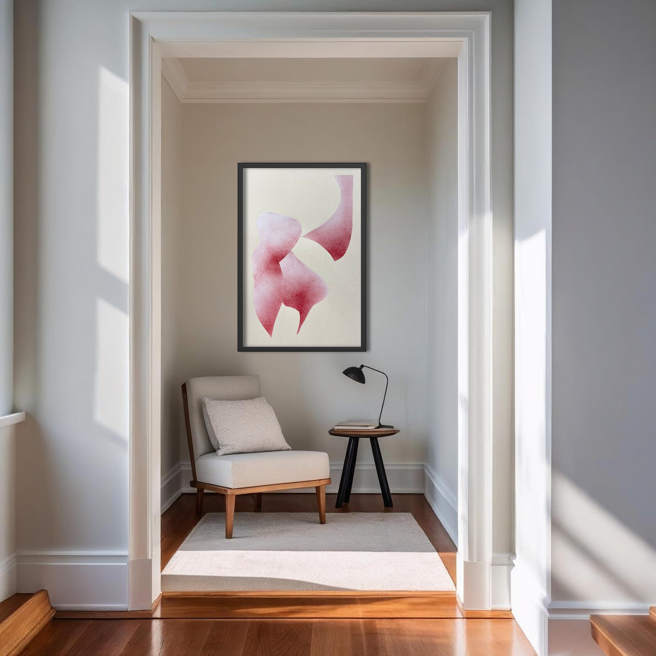 Podsumowując, „Kompozycja cielesna X” to dojrzała i intymna praca Klary Tomczak, która poprzez odmienną paletę barwną – opartą na ciepłym beżu i zróżnicowanych odcieniach różu i czerwieni – pogłębia jej eksplorację tematu cielesności. Używając techniki kolażu pigmentowego, artystka tworzy abstrakcyjne formy o silnym, lecz subtelnym zabarwieniu figuratywnym, które zmuszają widza do refleksji nad pięknem i akceptacją tego, co w ludzkim ciele bywa często niedoskonałe lub ukryte. To dzieło, pomimo swojej wizualnej prostoty, jest bogate w symbolikę, zapraszając do głębokiej kontemplacji nad naturą samoakceptacji i uniwersalnym doświadczeniem życia w swoim ciele.