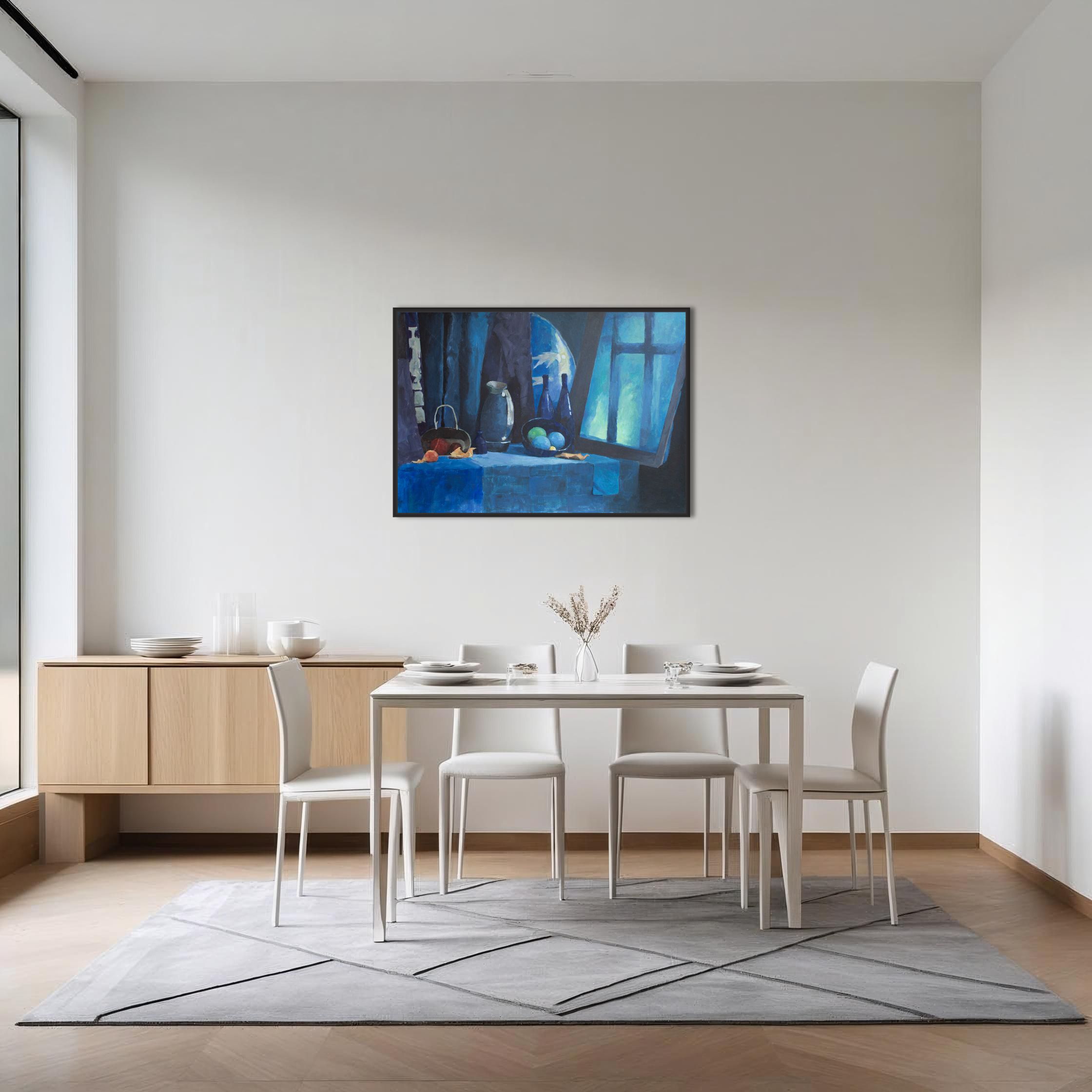 Podsumowanie: „Niebieska martwa natura” jest świadomym i emocjonalnym dziełem, które potwierdza artystyczną dojrzałość młodej malarki. Jej zdolność do budowania głębokich nastrojów za pomocą ograniczonej palety barw, w połączeniu z pewnym gestem malarskim, czyni ten obraz znaczącym przykładem współczesnego malarstwa. Jest to praca, która z powodzeniem wzbogaci każde wnętrze, oferując przestrzeń do estetycznej kontemplacji i introspekcji.