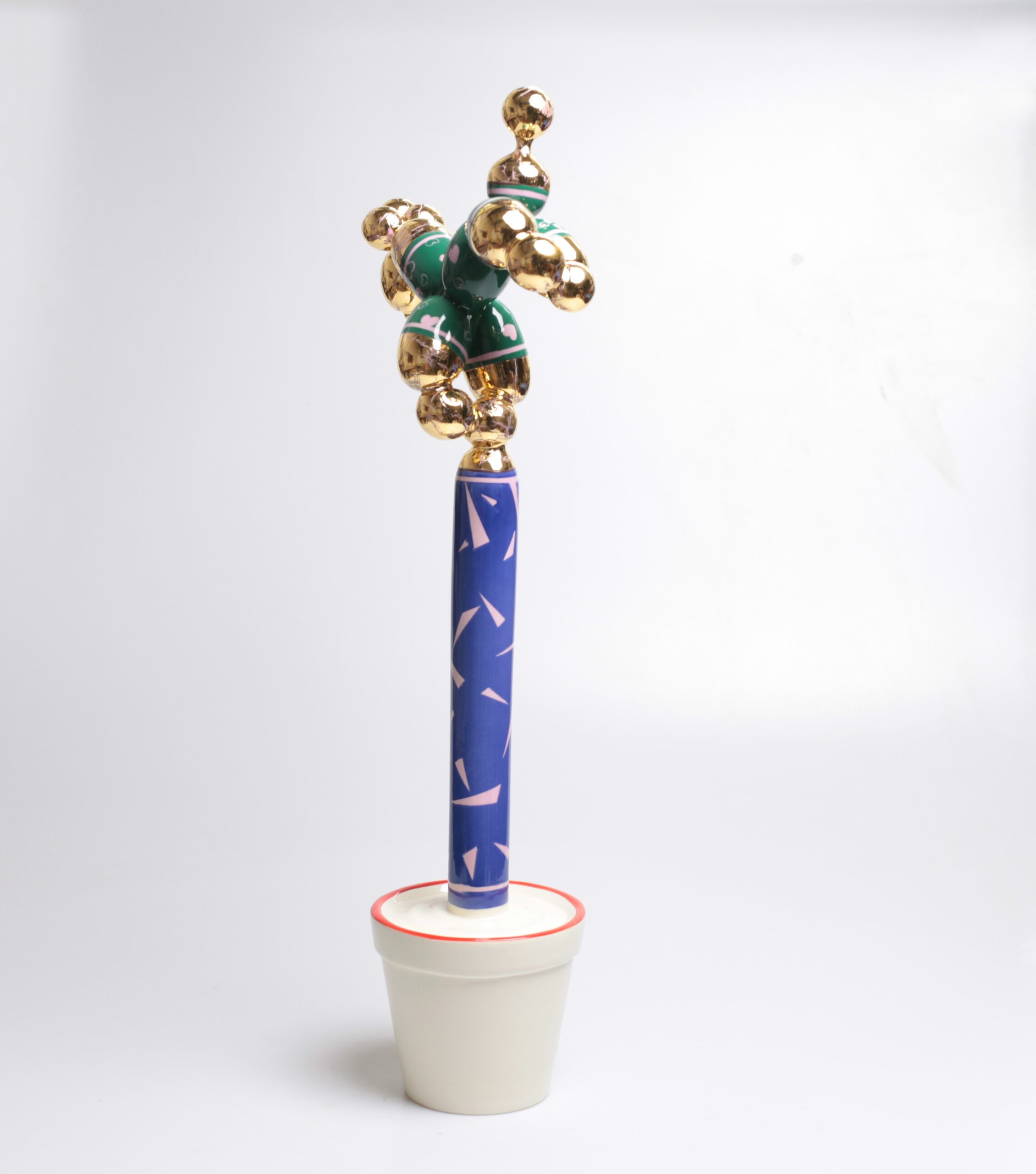 Artysta bezpośrednio nawiązuje do “Balloon Dog” Jeffa Koonsa. O ile Koons używa stali nierdzewnej, by udawać lekkość balonu, Dydo idzie o krok dalej – używa szlachetnej ceramiki, by stworzyć “roślinną” wersję tej ikony, dodając jej nową, narracyjną głębię. Tego typu rzeźba pełni rolę statement piece. Nie jest tylko dekoracją, ale inteligentnym żartem artystycznym, który komentuje naszą potrzebę otaczania się przedmiotami estetycznymi, luksusowymi, a jednocześnie nasyconymi pop-kulturowymi kodami.