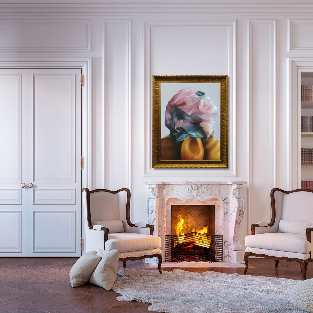Pomiędzy to jeden z trzech obrazów tworzących krótką serię „Narracje wizualne”, prezentowaną w naszej Galerii Wiele Sztuki. Surrealistyczne i niepokojące portrety powstały w wyniku fascynacji malarki anatomią ludzkiej twarzy i jednocześnie chęci przedstawienia jej w zaskakujący i nieoczywisty sposób, otwierający drogę do swobodnych i indywidualnych interpretacji. Te oniryczne wizje z pogranicza jawy i halucynacji przedstawiają modele poddane jakimś tajemniczym deformacjom, burząc logiczny porządek znanej nam rzeczywistości.