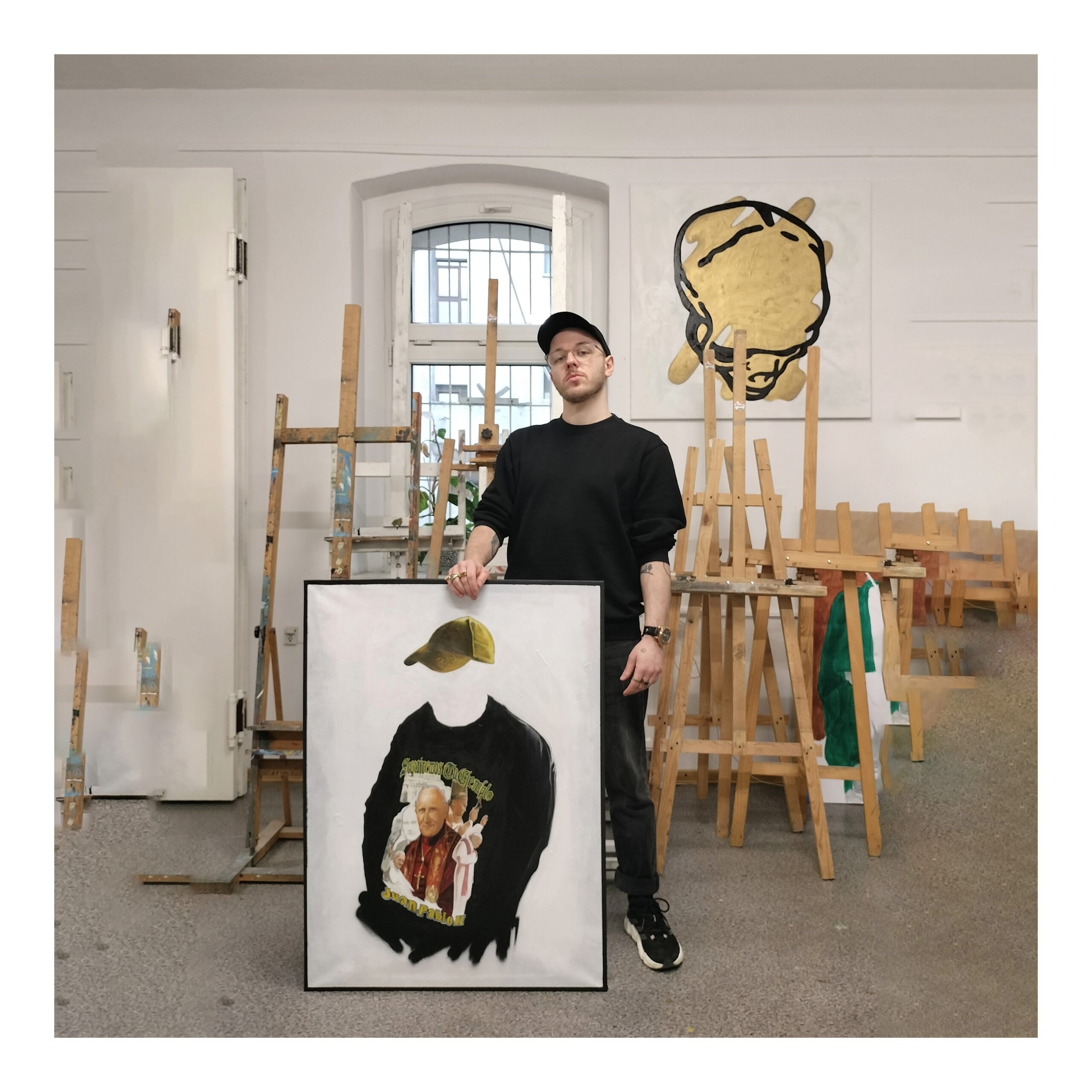 W obrazie Kanye Paweł Franciszek Jaskuła kieruje swoją analityczną metodę na kolejny, być może najbardziej newralgiczny system wartości – religię i jej miejsce we współczesnej popkulturze. Po dekonstrukcji mitów ekonomicznych i konsumpcyjnych, artysta podejmuje odważny dialog z sferą sacrum. Tytuł jest tu kluczem, który odsyła nas do postaci Kanye Westa – artysty-symbolu, w którym w sposób skrajny i publiczny ścierają się deklaracje głębokiej wiary z megalomanią, komercyjnym geniuszem i chaosem. Jaskuła nie maluje jednak portretu rapera. Tworzy znacznie bardziej uniwersalny wizerunek – portret epoki, w której żyjemy.