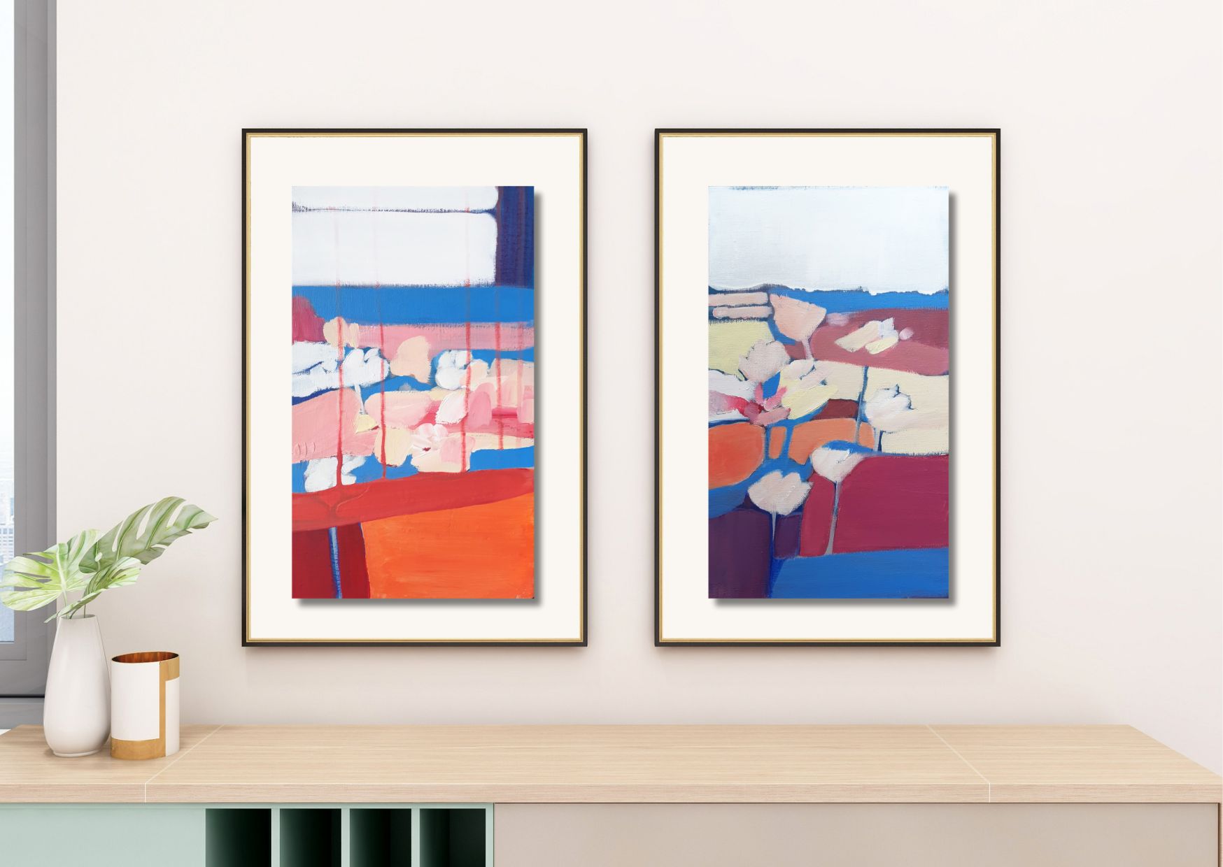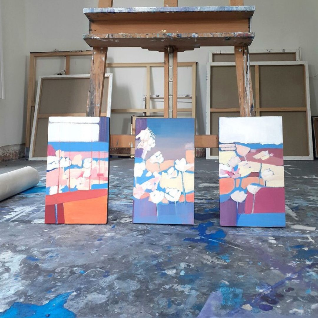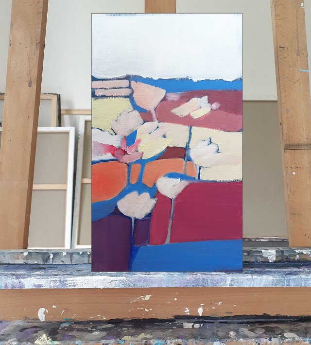 Obrazy przedstawiają impresje na temat motywów kwiatowych, przedstawionych na abstrakcyjnym tle kolorowych płaszczyzn. Kompozycje są inspirowane architekturą wnętrz, której elementy możemy rozpoznać na poszczególnych pracach z cyklu.