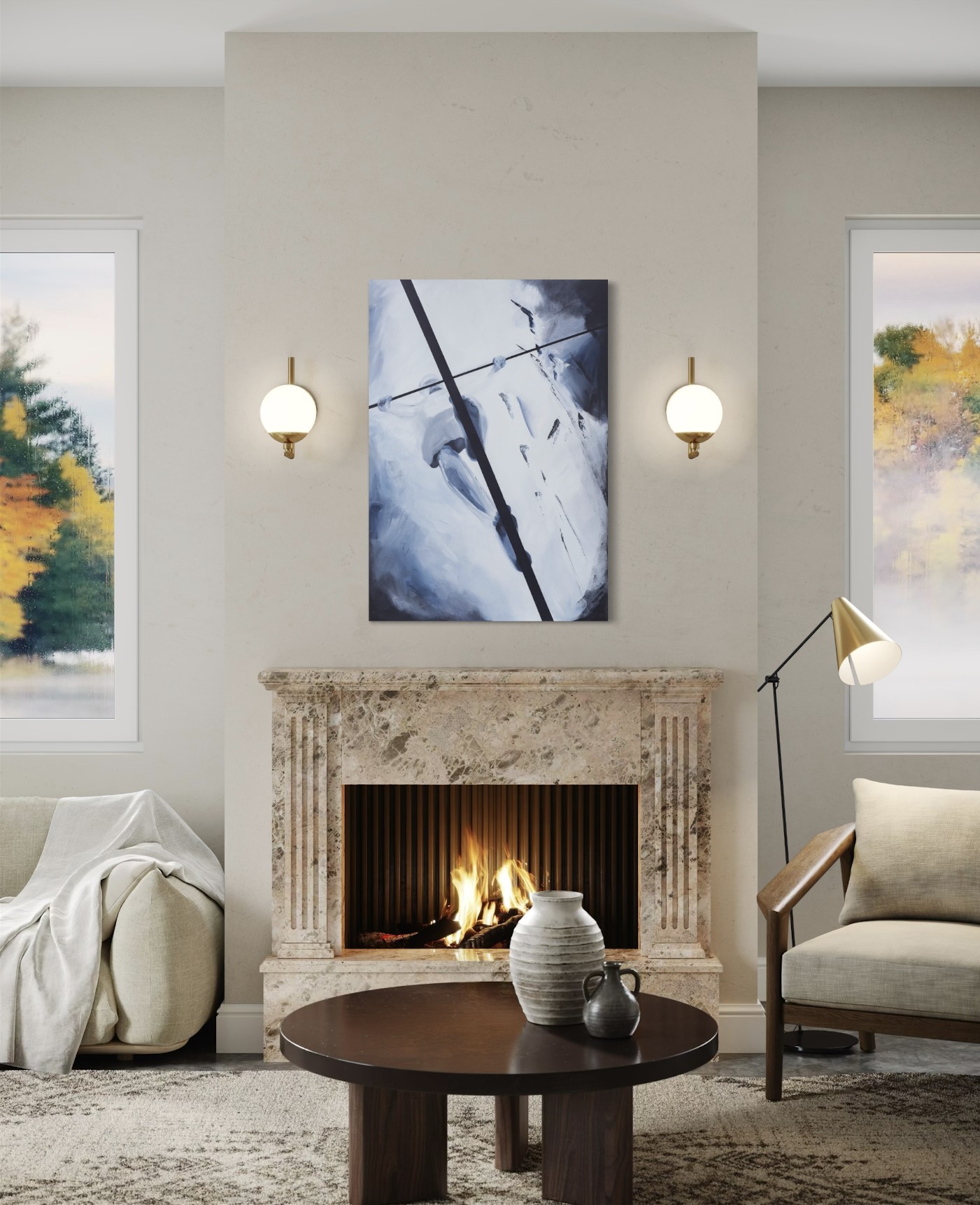 Obraz “Równowaga” Sabiny Dębickiej pochodzi z refleksyjnego cyklu “W Czerni”. Artystka konfrontuje w nim widza z fundamentalnymi pytaniami o kondycję ludzką, dotykając uniwersalnych tematów równowagi, ograniczeń i nieustannej walki. Obraz to studium ludzkiej psychiki, uwikłanej w nieustanny proces poszukiwania równowagi między ciałem a umysłem, między stanem bycia a niebycia.