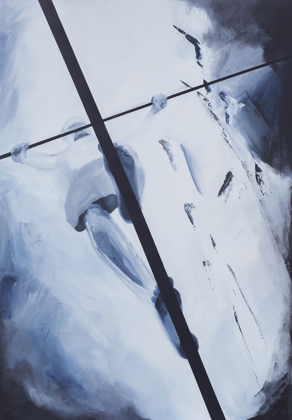 Kompozycja obrazu koncentruje się na postaci akrobatki, balansującej na linie. Jej ciało jest przedstawione od dołu, w dużym skrócie perspektywicznym. Geometryczne, ostre elementy, kontrastujące z miękkimi pociągnięciami pędzla, symbolizują walkę i determinację. Artystka, zestawiając te dwa przeciwstawne elementy, ukazuje dualizm ludzkiego doświadczenia, w którym delikatność i kruchość przeplatają się z siłą i wolą przetrwania.