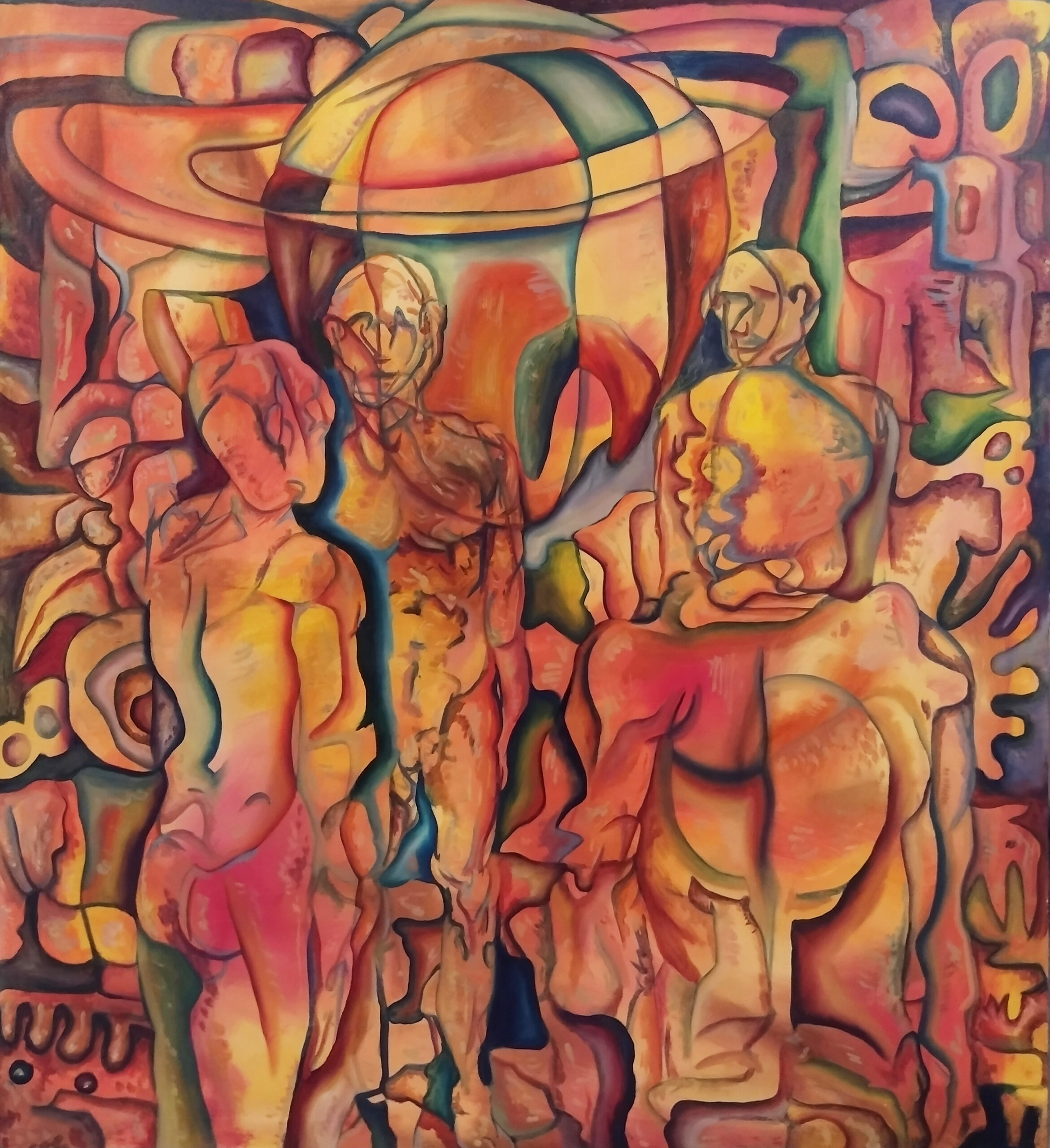 Obraz Rytuał, z jego totemicznymi figurami, tajemniczą ceremonią i odwołaniem do zbiorowej świadomości, jest doskonałym przykładem współczesnej sztuki archetypicznej, która za pomocą nowoczesnego języka malarskiego bada najstarsze wzorce ludzkiego zachowania.