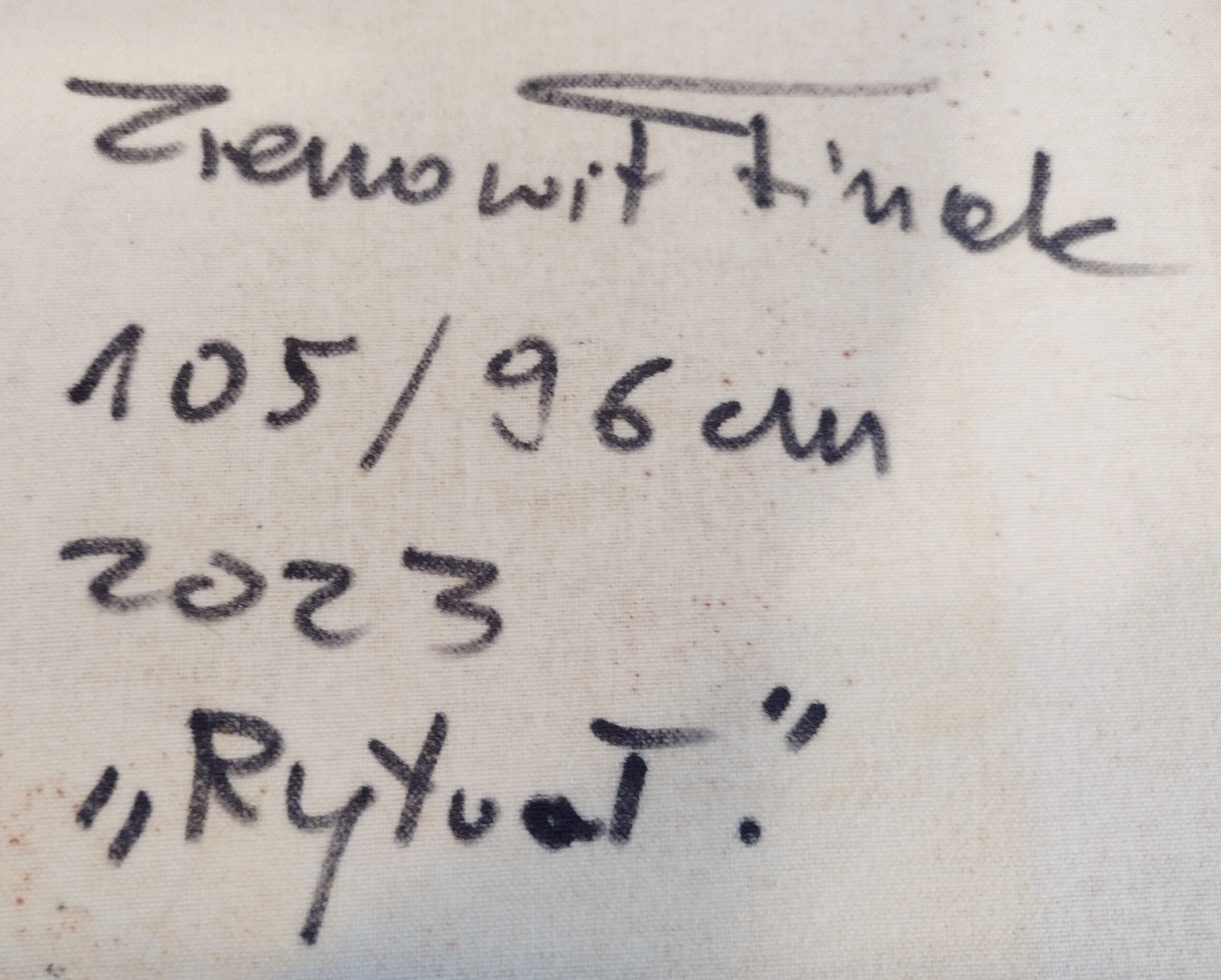 Temat rytuału, jako fundamentalnego dla ludzkiej cywilizacji aktu wspólnotowego, od zarania dziejów stanowił wyzwanie i inspirację dla artystów. Od prehistorycznych malowideł w jaskiniach, przez uroczyste procesje na greckich fryzach, po sakralny mistycyzm w dziełach El Greca czy egzotyczne ceremonie w obrazach Gauguina – historia sztuki jest pełna prób uchwycenia istoty tych tajemniczych, powtarzalnych działań, które spajają społeczność i łączą ją ze sferą sacrum. Ziemowit Fincek w swoim obrazie Rytuał wchodzi w dialog z tą bogatą tradycją, proponując jednak własne, współczesne ujęcie.