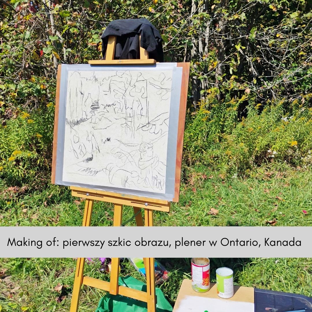 W przypadku obrazu Wild Rose Farm I Ziemowit Fincek stosuje złożoną technikę, która wpisuje się w tę tradycję. Płótno, jako klasyczny nośnik malarstwa, zostaje najpierw wzmocnione poprzez podklejenie na sztywnej płycie, co daje artyście stabilne, odporne na odkształcenia podłoże, idealne do ekspresyjnej pracy.