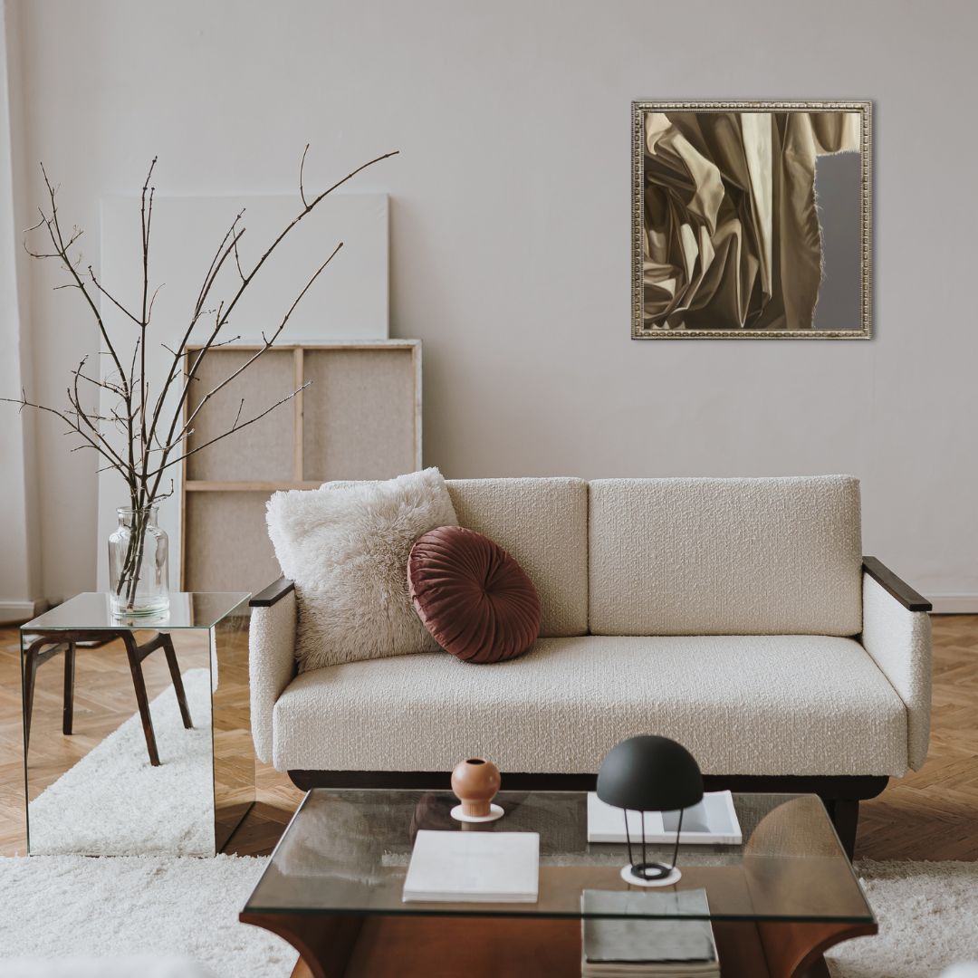 Styl i technika: Analizując styl obrazu, należy odrzucić kuszącą na pierwszy rzut oka klasyfikację do abstrakcyjnego ekspresjonizmu. Mimo iż kompozycja opiera się na abstrakcyjnym motywie fałd, sposób ich przedstawienia jest wysoce realistyczny. Artystka z niezwykłą precyzją warsztatową oddaje fakturę materiału, grę światła i cienia, modelując fałdy z dbałością o detale.